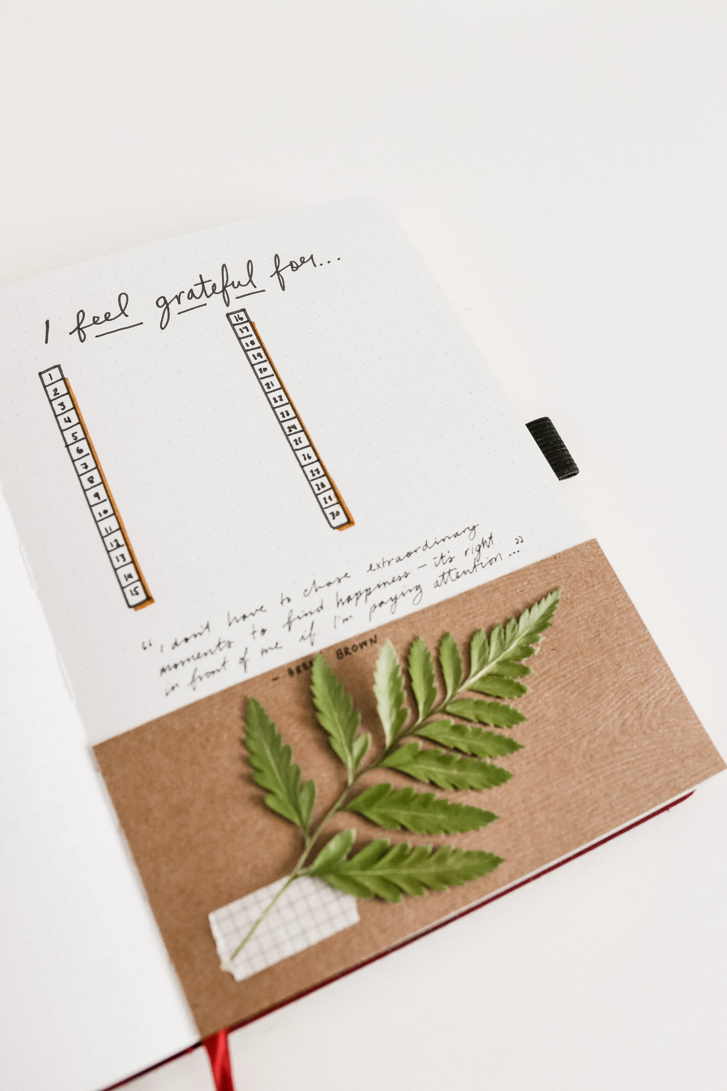 I then used my *muji gel ink pen in size 0.5 to write a Brene Brown quote I found on Pinterest that says, “I don’t have to chase extraordinary moments to find happiness— it’s right in front of me if I’m paying attention and practising gratitude.”